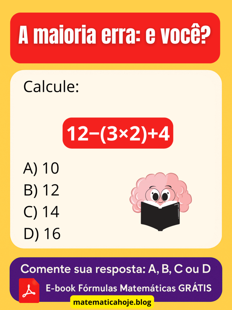 Será que você acerta? Calcule 12 − (3×2) + 4