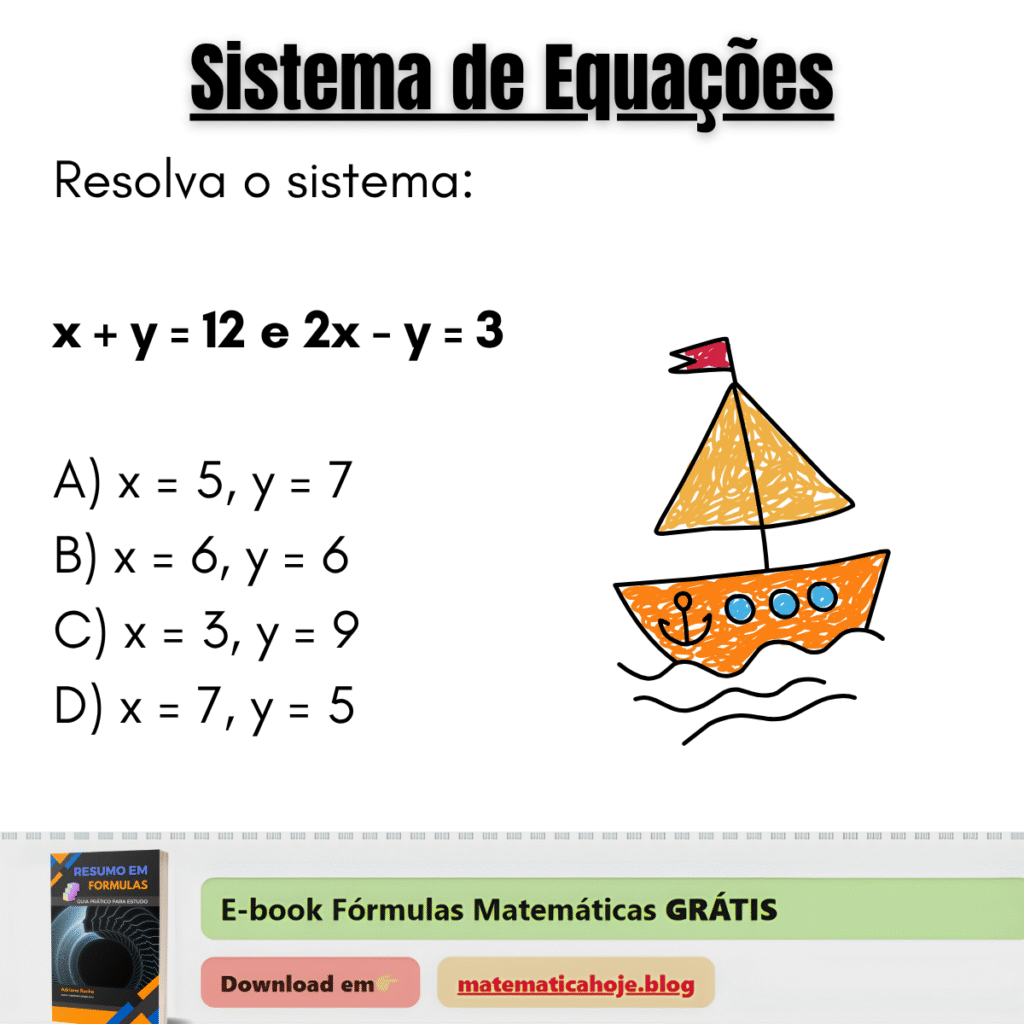 🧩 Sistemas Lineares — Resolva o Sistema Resolva o sistema: \( \begin{cases} x + y = 12 \\ 2x – y
