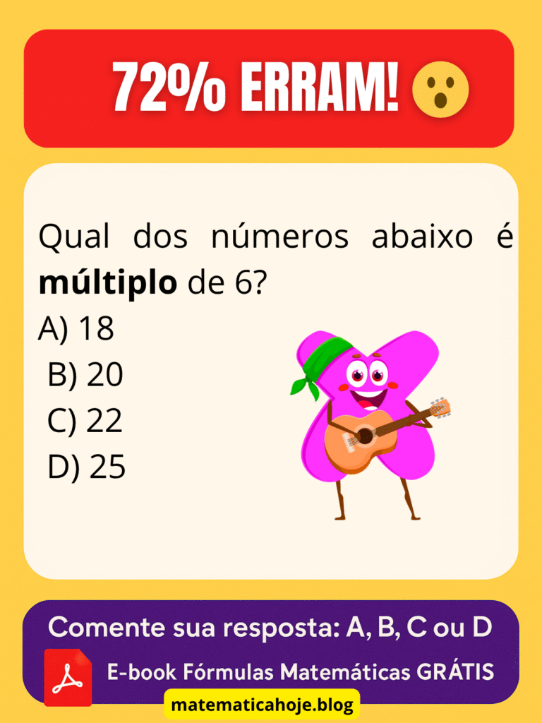 🔢 Múltiplos de 6 — Exercício Resolvido Passo a Passo Qual dos números abaixo é múltiplo de 6? A) 18 B)