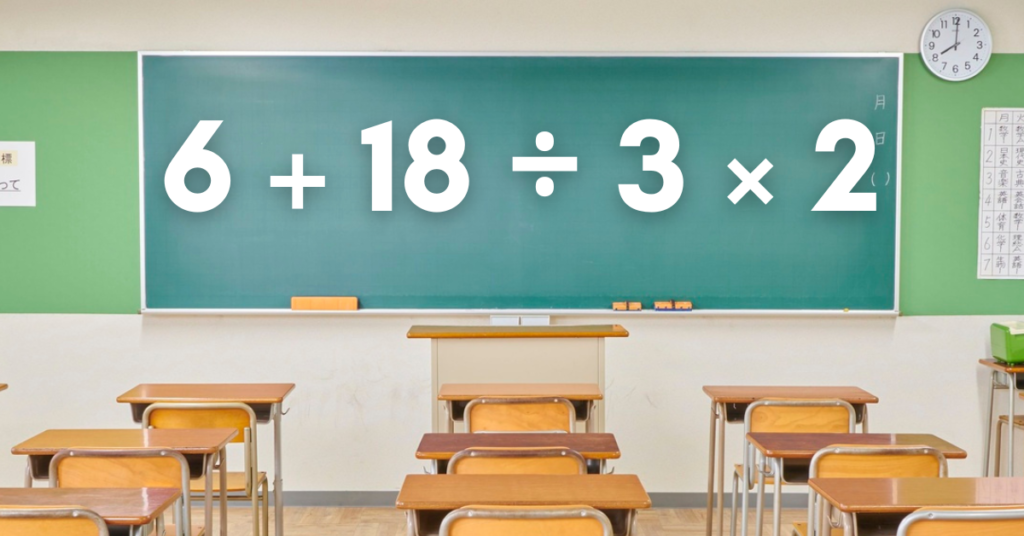 Essa expressão parece fácil, mas derruba até bons alunos: 6 + 18 ÷ 3 × 2