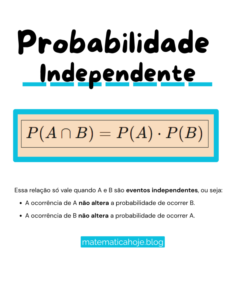 Probabilidade Independente — Conceito, Fórmula e Exercícios Dois eventos são chamados de independentes quando a ocorrência de um deles não altera