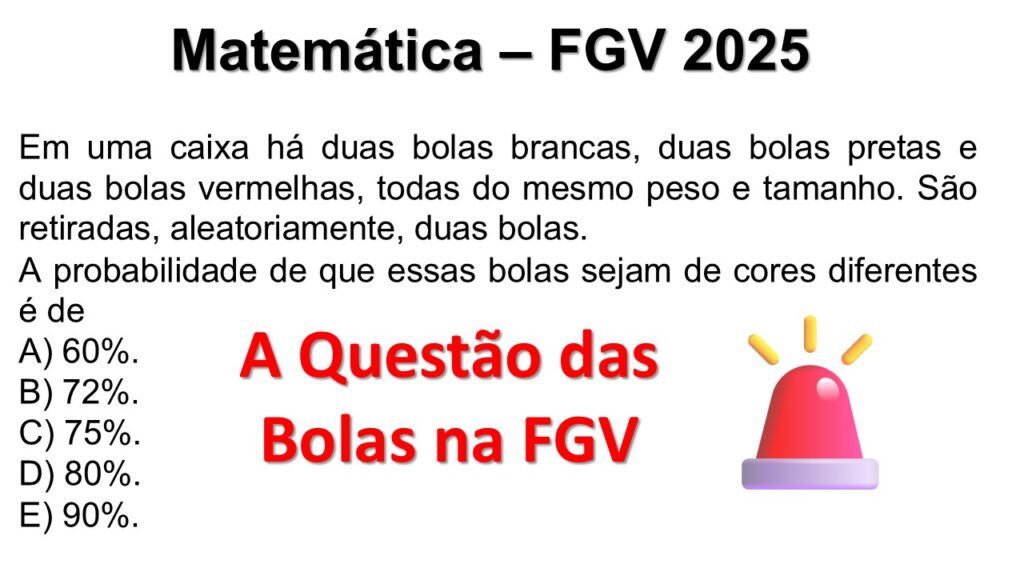 FGV 2025 Matemática | Bolas de Cores Diferentes Matemática – FGV 2025 Conteúdo: Probabilidade sem Reposição Em uma caixa há duas