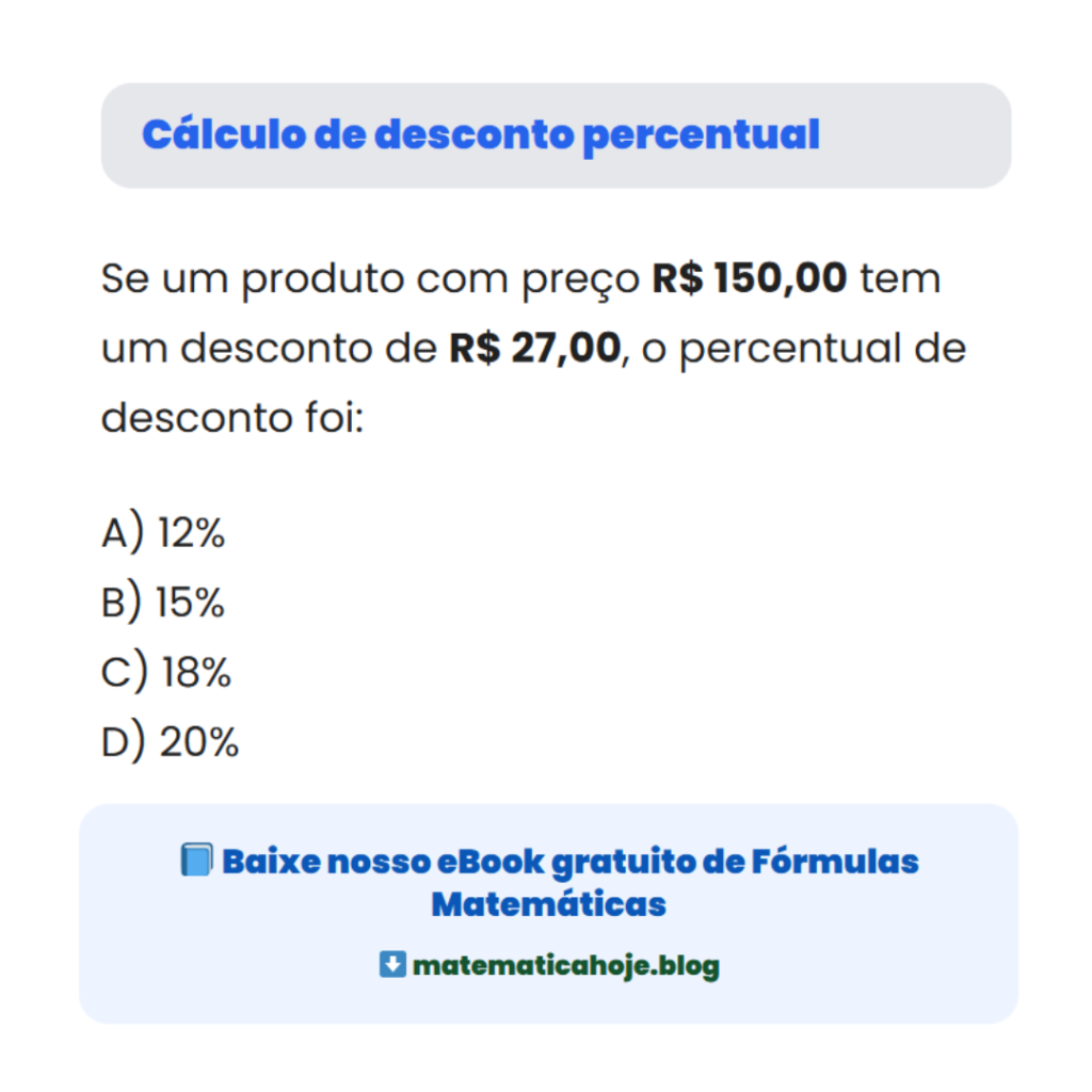 Desconto percentual: calcule o percentual de desconto Questões de porcentagem exigem atenção à relação entre parte e total. Cálculo de desconto