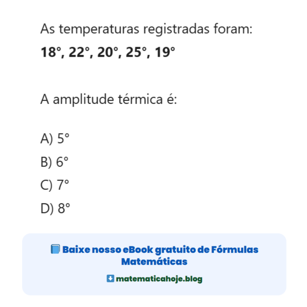 Cálculo da Amplitude Térmica A amplitude térmica é a diferença entre a maior e a