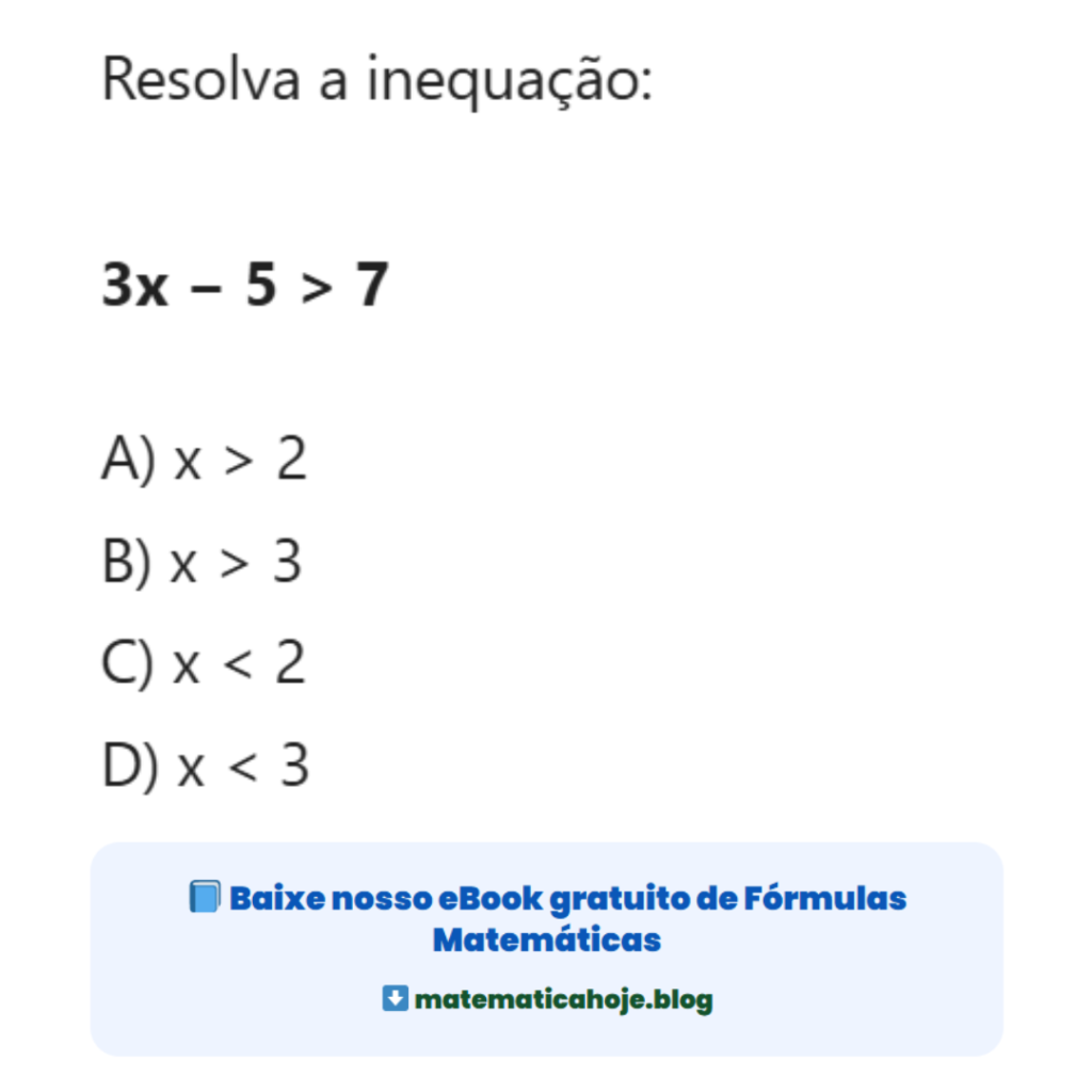 Inequação do 1º Grau Resolvida – 3x − 5 > 7 Passo a Passo