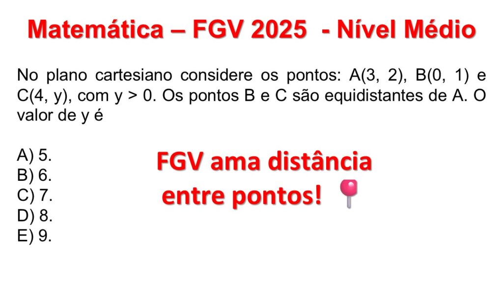 Pontos equidistantes de A – encontre y (FGV 2025) Matemática – FGV 2025 – Nível