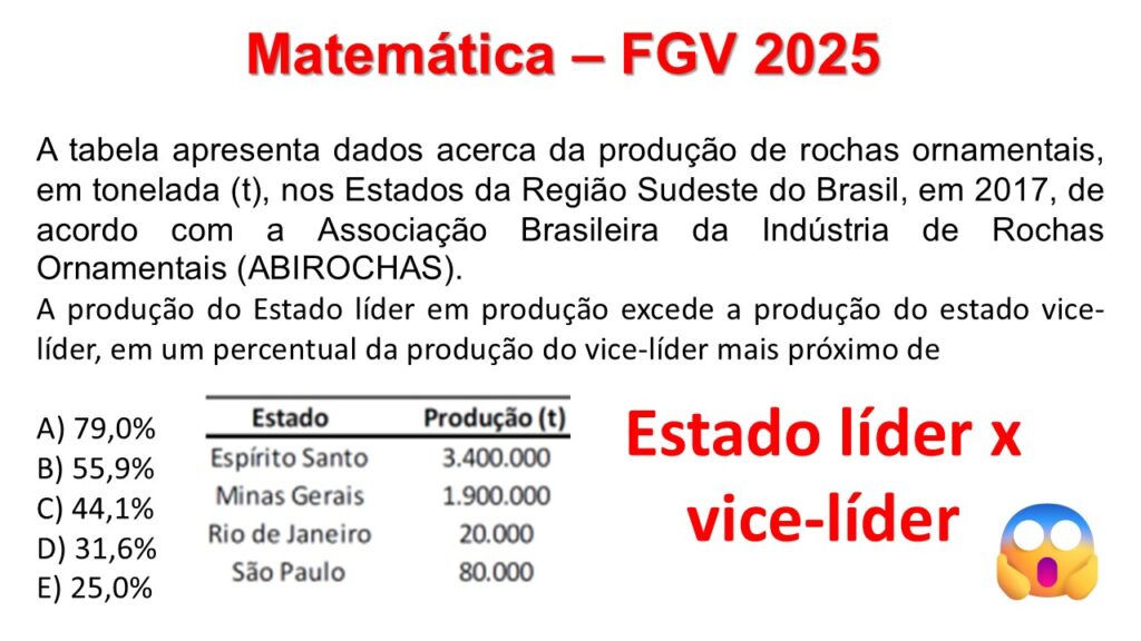 FGV 2025 Matemática | Gráfico de Setores Matemática – FGV 2025 – Nível Médio Conteúdo: Estatística — Gráfico de Setores Uma