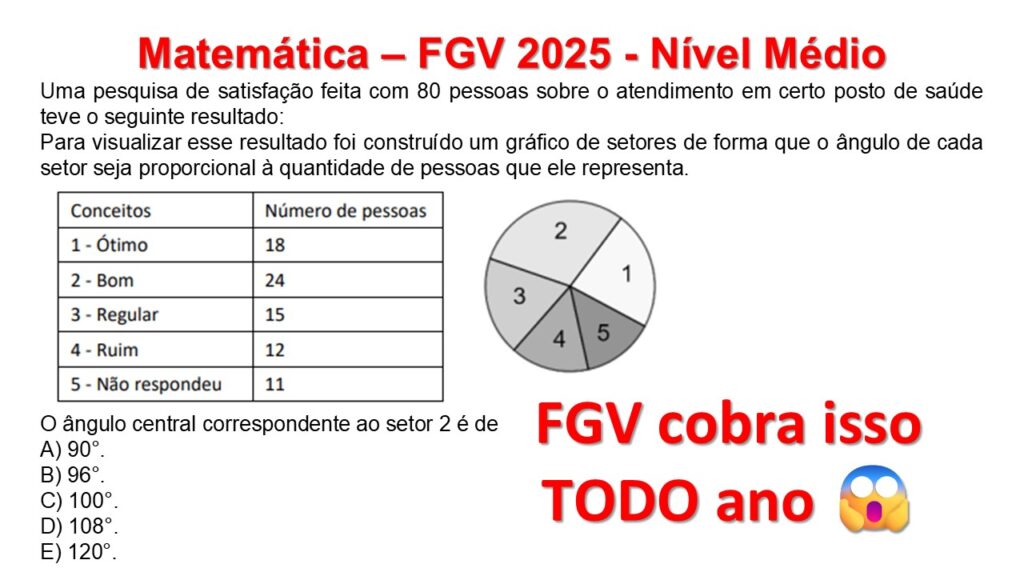 FGV 2025 Matemática: Ângulo Central em Gráfico de Setores
