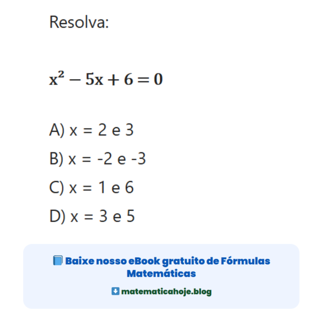 Equação do 2º Grau: x² − 5x + 6 = 0 (Questão Resolvida)