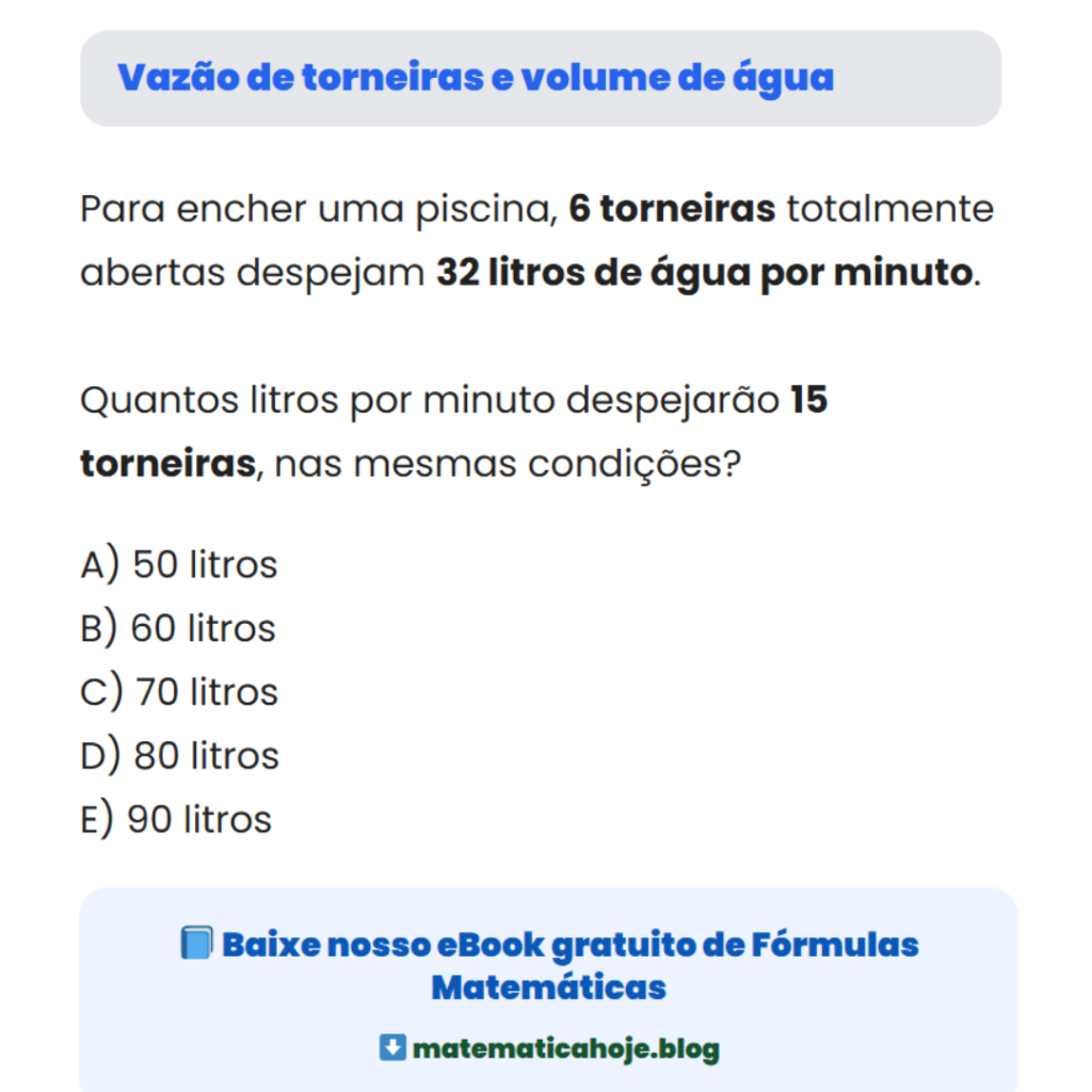 Regra de Três que derruba candidatos: quantos litros 15 torneiras despejam?