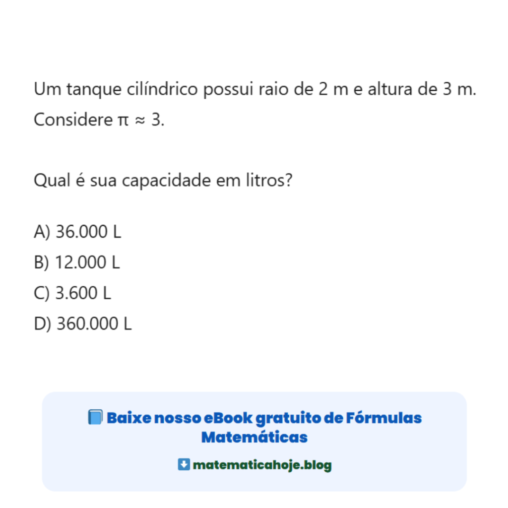 Volume do Cilindro em Litros – Questão Resolvida