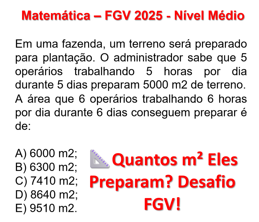 Regra de três composta – FGV 2025 Matemática – FGV 2025 – Nível Médio Conteúdo: