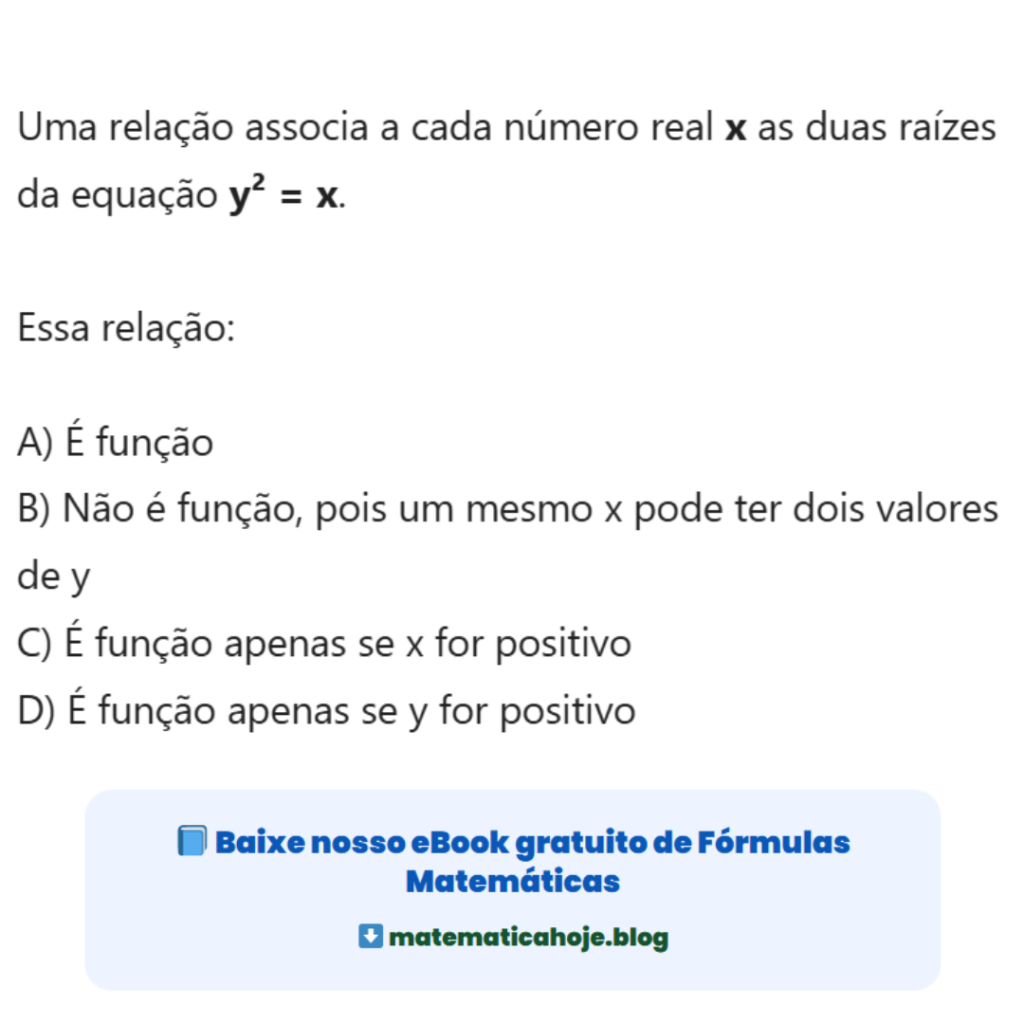 Relação y² = x é Função? Exercício Resolvido
