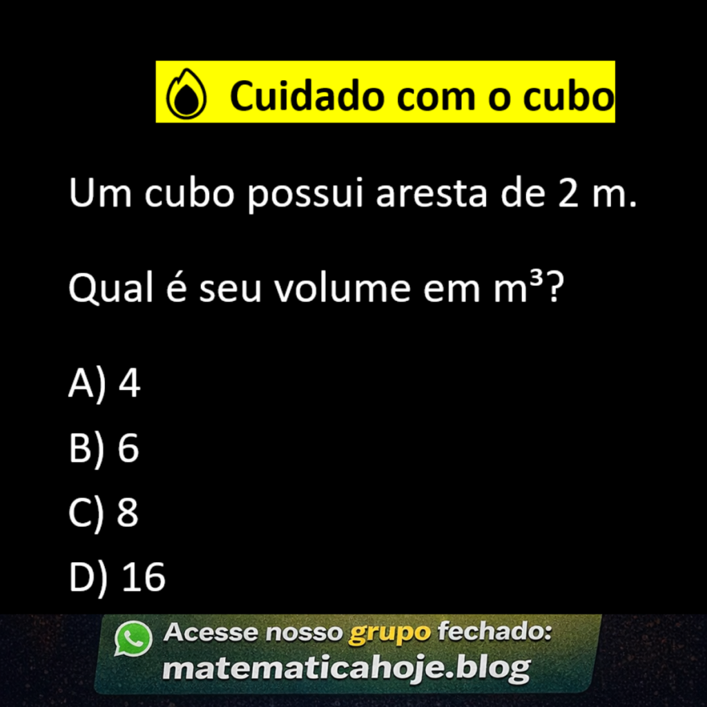 Ver solução completa 1 – Conceito: O volume de um cubo é calculado elevando a