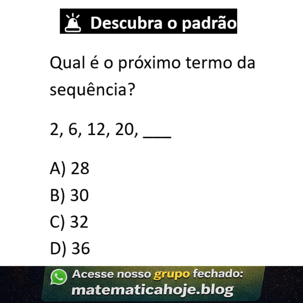 Ver solução completa 1 – Observando a sequência: 2, 6, 12, 20 2 – Calculando