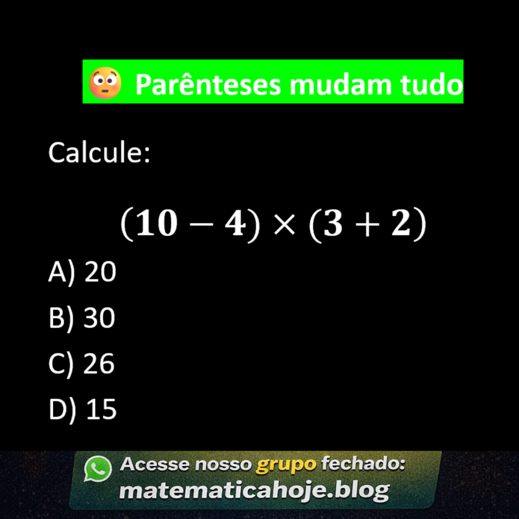 Ver solução completa 1 – Entendendo o enunciado Devemos resolver a expressão respeitando os parênteses.