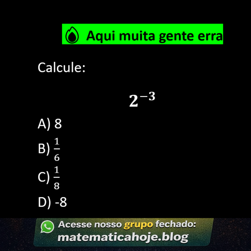 Ver solução completa 1 – Entendendo o enunciado Precisamos calcular uma potência com expoente negativo: