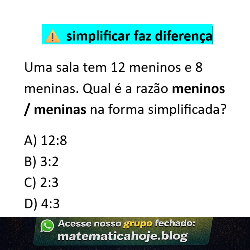Participe do grupo fechado do WhatsApp e tenha acesso a 1 a 3 questões estratégicas por dia, com resolução comentada e foco em ENEM e concursos.