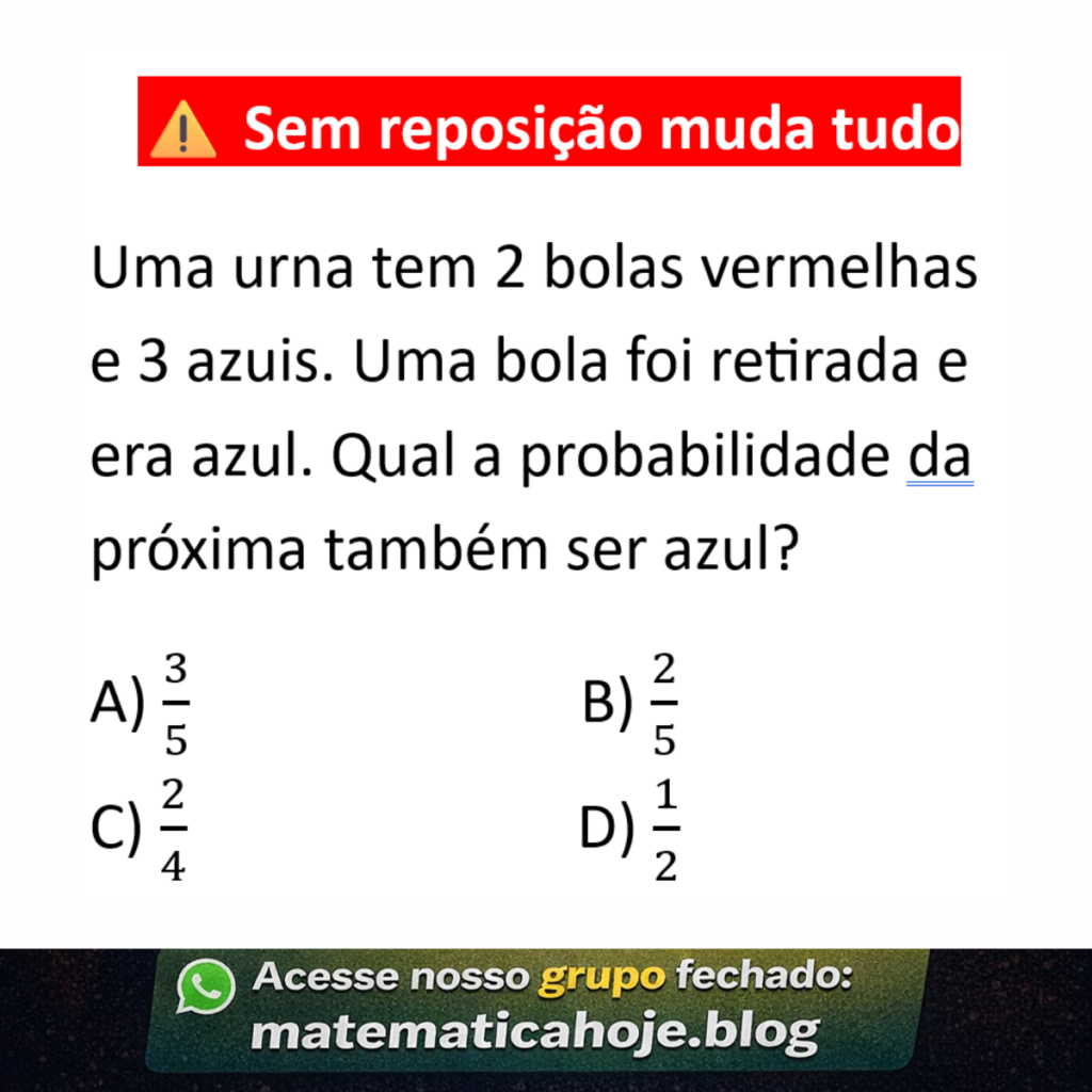 Probabilidade Sem Reposição: Qual a Chance de Sair Azul de Novo?