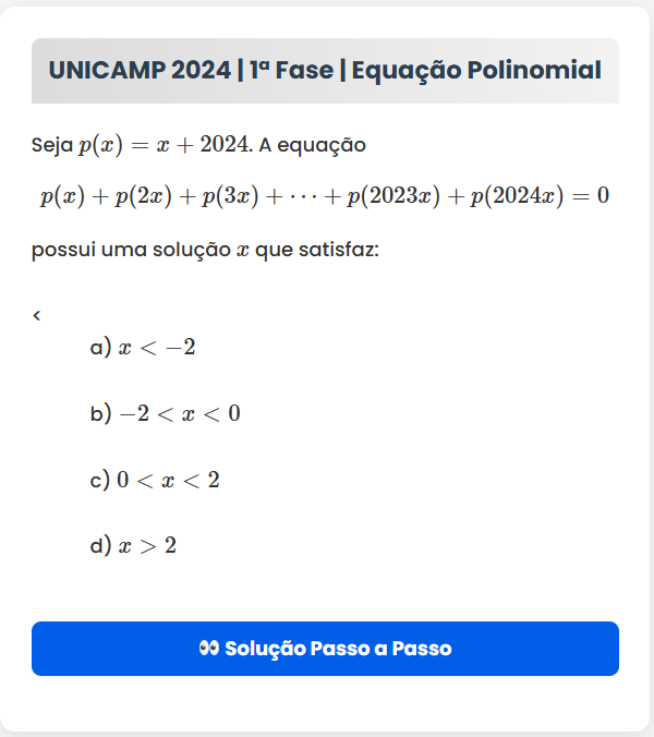 Continue lendoUNICAMP 2024 | Matemática | 1ª Fase | Equação Polinomial UNICAMP 2024 | Matemática | 1ª Fase | Equação Polinomial