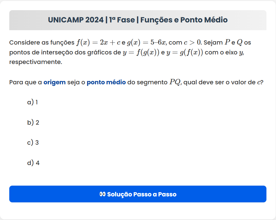 Continue lendoUNICAMP 2024 | Matemática | 2ª Fase | Funções e Ponto Médio UNICAMP 2024 | Matemática | 2ª Fase |