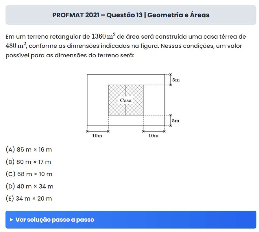 Continue lendoPROFMAT 2021 – Questão 13 | Geometria e Áreas PROFMAT 2021 – Questão 13 | Geometria e Áreas Em um