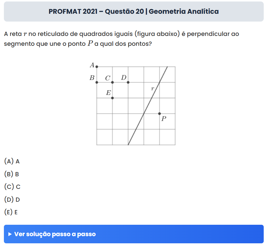 Continue lendoPROFMAT 2021 – Questão 20 | Geometria Analítica PROFMAT 2021 – Questão 20 | Geometria Analítica A reta \( r