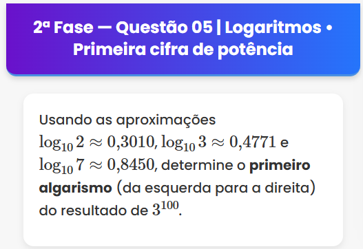 Continue lendo2ª Fase — Questão 05 | ITA 2025 2ª Fase — Questão 05 | Logaritmos • Primeira cifra de potência