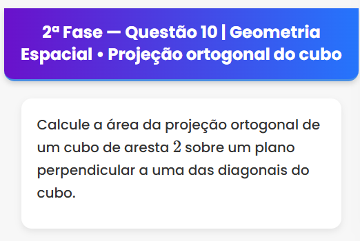 2ª Fase — Questão 10 | ITA 2025 2ª Fase — Questão 10 | Geometria Espacial • Projeção ortogonal do