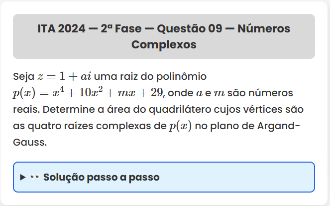 Continue lendoITA 2024 — 2ª Fase — Questão 09 ITA 2024 — 2ª Fase — Questão 09 — Números Complexos Seja