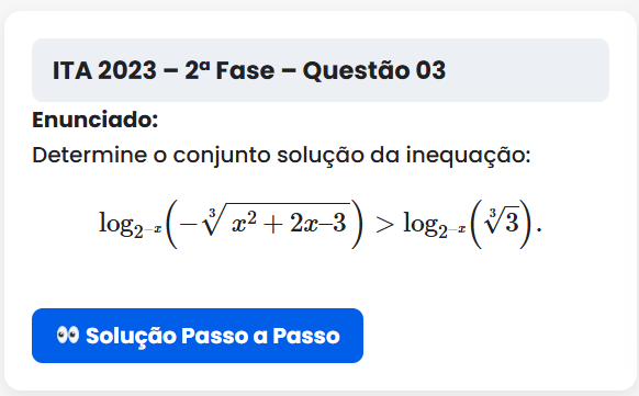 Continue lendoITA 2023 – 2ª Fase – Questão 03 ITA 2023 – 2ª Fase – Questão 03 – Logaritmos Enunciado: Determine