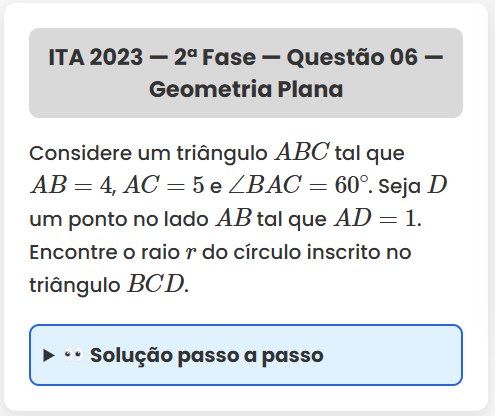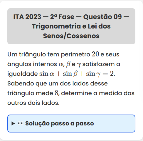 Continue lendoITA 2023 — 2ª Fase — Questão 09 ITA 2023 — 2ª Fase — Questão 09 — Trigonometria e Lei