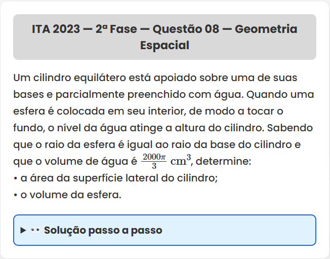 Continue lendoITA 2023 — 2ª Fase — Questão 08 ITA 2023 — 2ª Fase — Questão 08 — Geometria Espacial Um