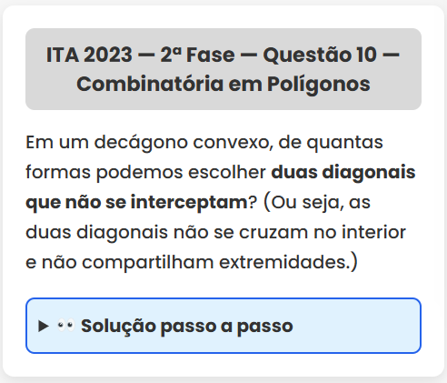 Continue lendoITA 2023 — 2ª Fase — Questão 10 ITA 2023 — 2ª Fase — Questão 10 — Combinatória em Polígonos