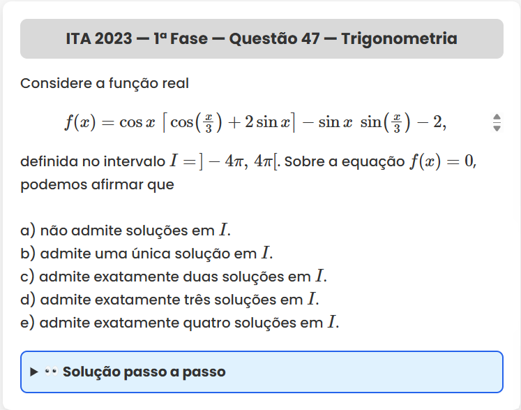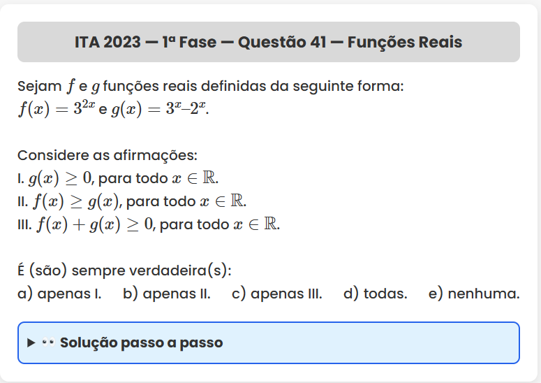 Continue lendoITA 2023 — 1ª Fase — Questão 41 ITA 2023 — 1ª Fase — Questão 41 — Funções Reais Sejam