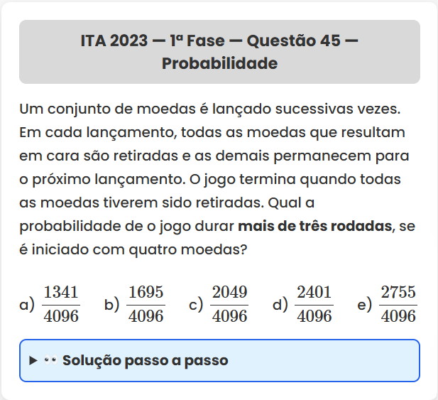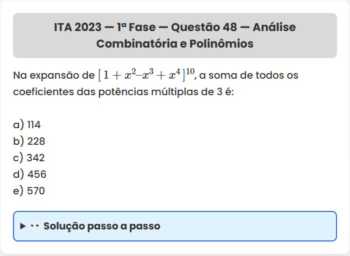 Continue lendoITA 2023 — 1ª Fase — Questão 48 ITA 2023 — 1ª Fase — Questão 48 — Análise Combinatória e