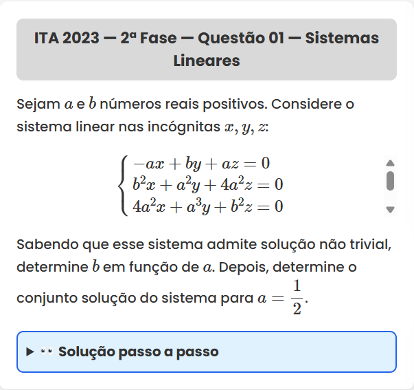 Continue lendoITA 2023 — 2ª Fase — Questão 01 ITA 2023 — 2ª Fase — Questão 01 — Sistemas Lineares Sejam