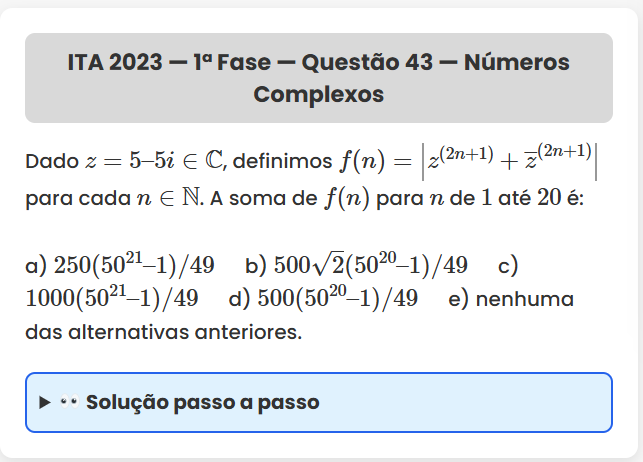 Continue lendoITA 2023 — 1ª Fase — Questão 43 ITA 2023 — 1ª Fase — Questão 43 — Números Complexos Dado