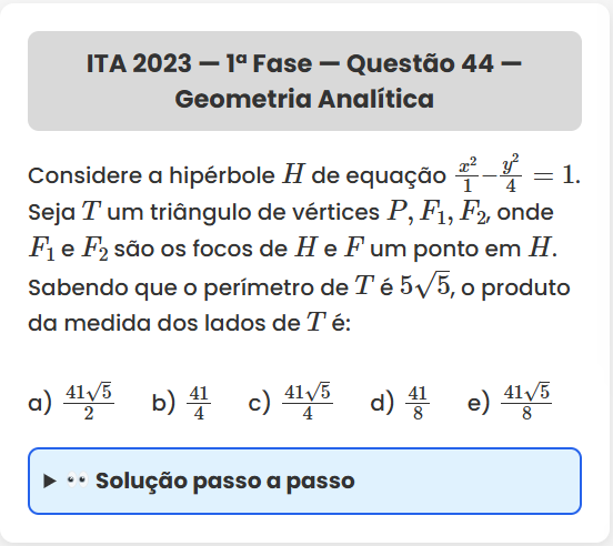 Continue lendoITA 2023 — 1ª Fase — Questão 44 ITA 2023 — 1ª Fase — Questão 44 — Geometria Analítica Considere