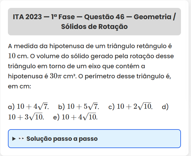 Continue lendoITA 2023 — 1ª Fase — Questão 46 ITA 2023 — 1ª Fase — Questão 46 — Geometria / Sólidos