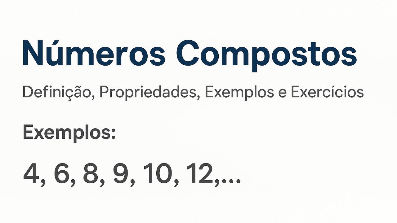 Continue lendoNúmeros Compostos: Definição, Propriedades, Exemplos, Fatoração e Exercícios Números Compostos — Definição, Propriedades, Exemplos e Exercícios Atualizado em 22 de
