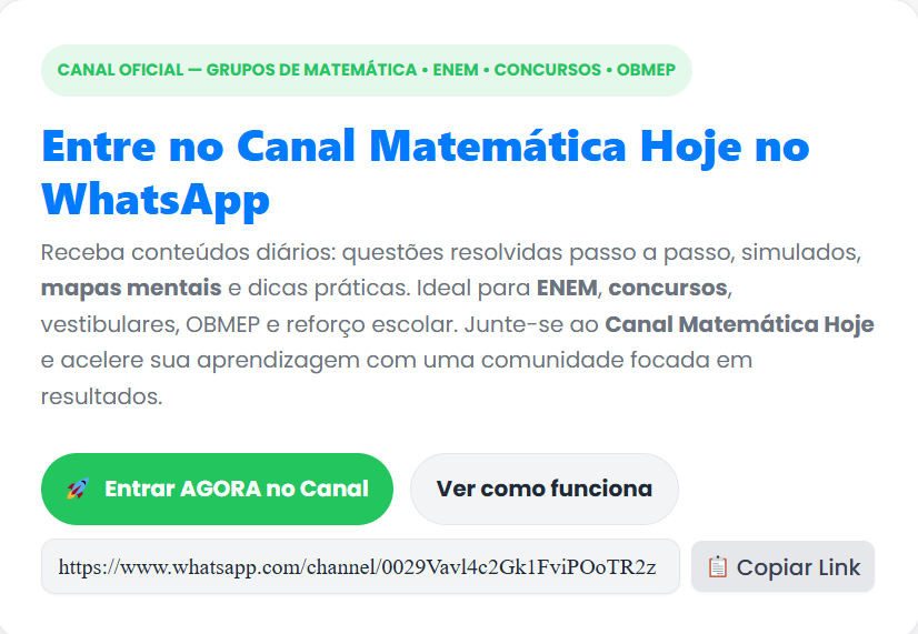 Continue lendoGrupos de Matemática — Entre no Canal Matemática Hoje no WhatsApp Matemática Hoje 💬 Entrar no Canal no WhatsApp Canal