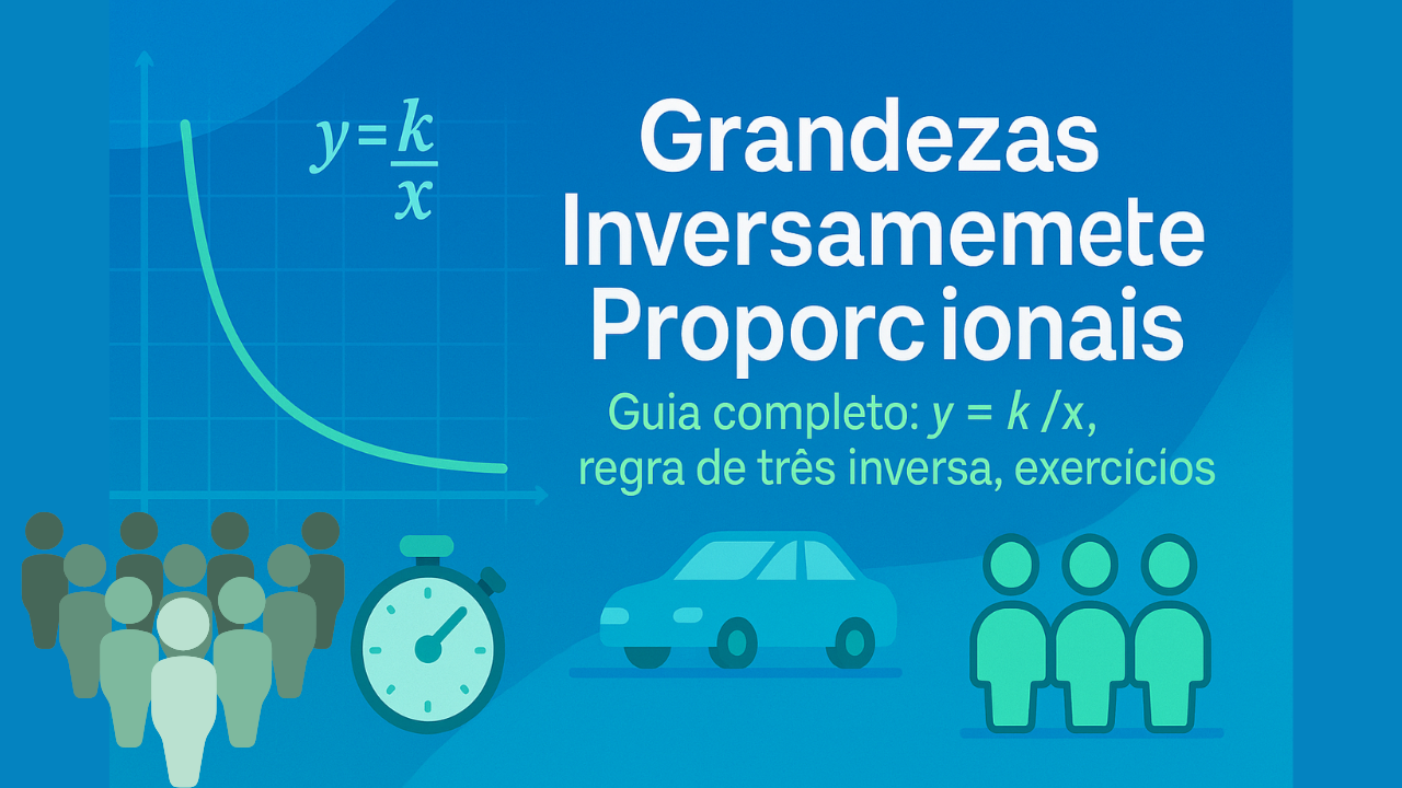 Continue lendoGrandezas Inversamente Proporcionais (GIP) Definição formal \(y=\dfrac{k}{x}\), testes de identificação, regra de três inversa, aplicações, exemplos e exercícios com soluções