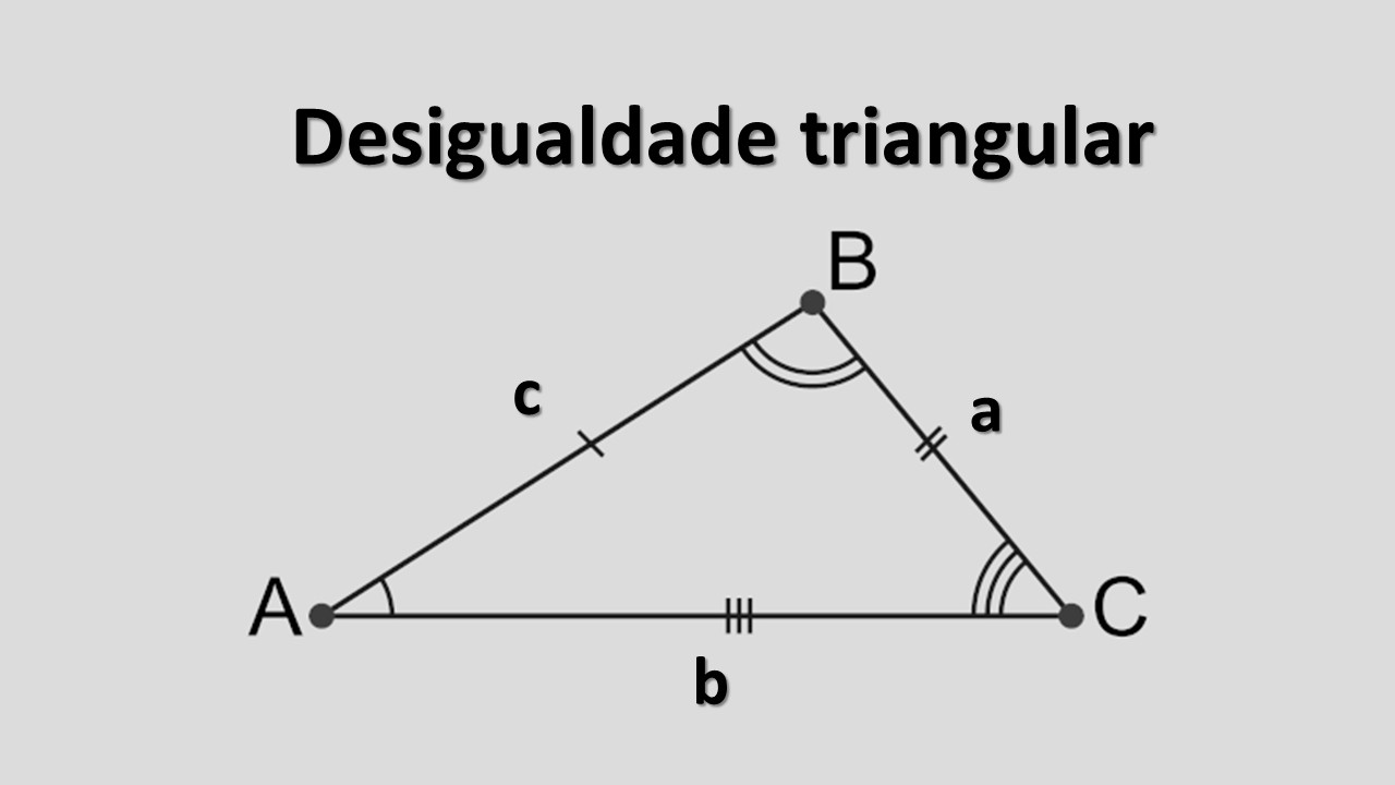 Desigualdade Triangular — condição de existência de um triângulo Desigualdade Triangular A desigualdade triangular dá a condição necessária e suficiente