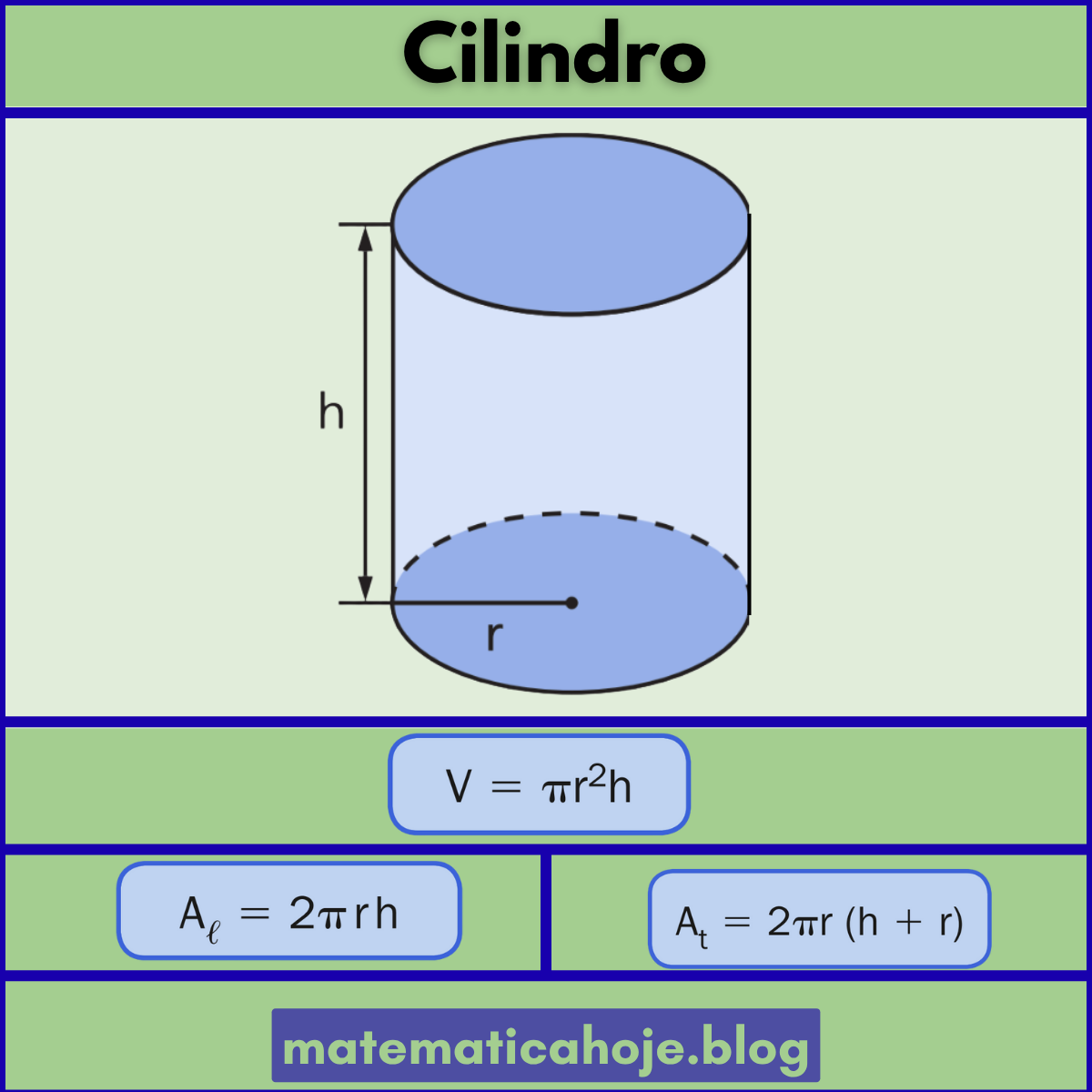 Continue lendoCilindro – Volume, Área Lateral e Área Total (Fórmulas e Exercícios) CILINDRO – Geometria Espacial Volume, Área Lateral e Área