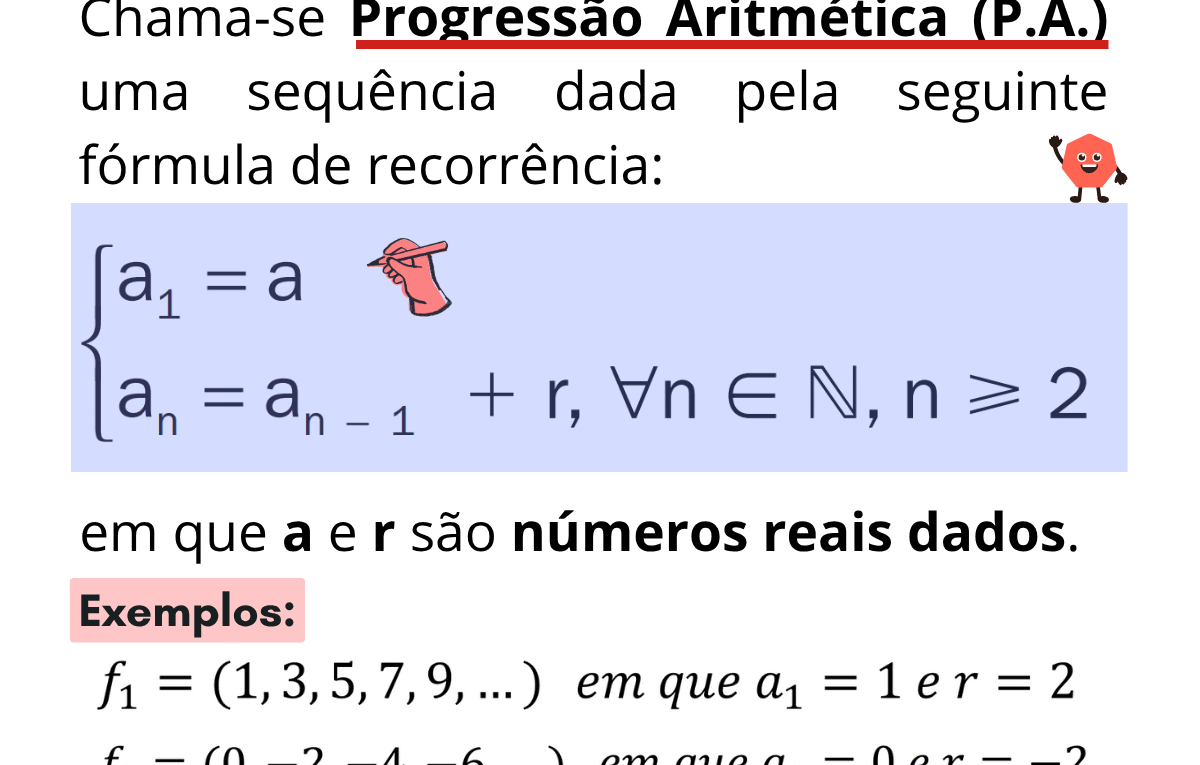 Continue lendoDefinição de Progressão Aritmética (P.A.) — Matemática Hoje Definição de Progressão Aritmética (P.A.) A Progressão Aritmética (P.A.) é uma sequência