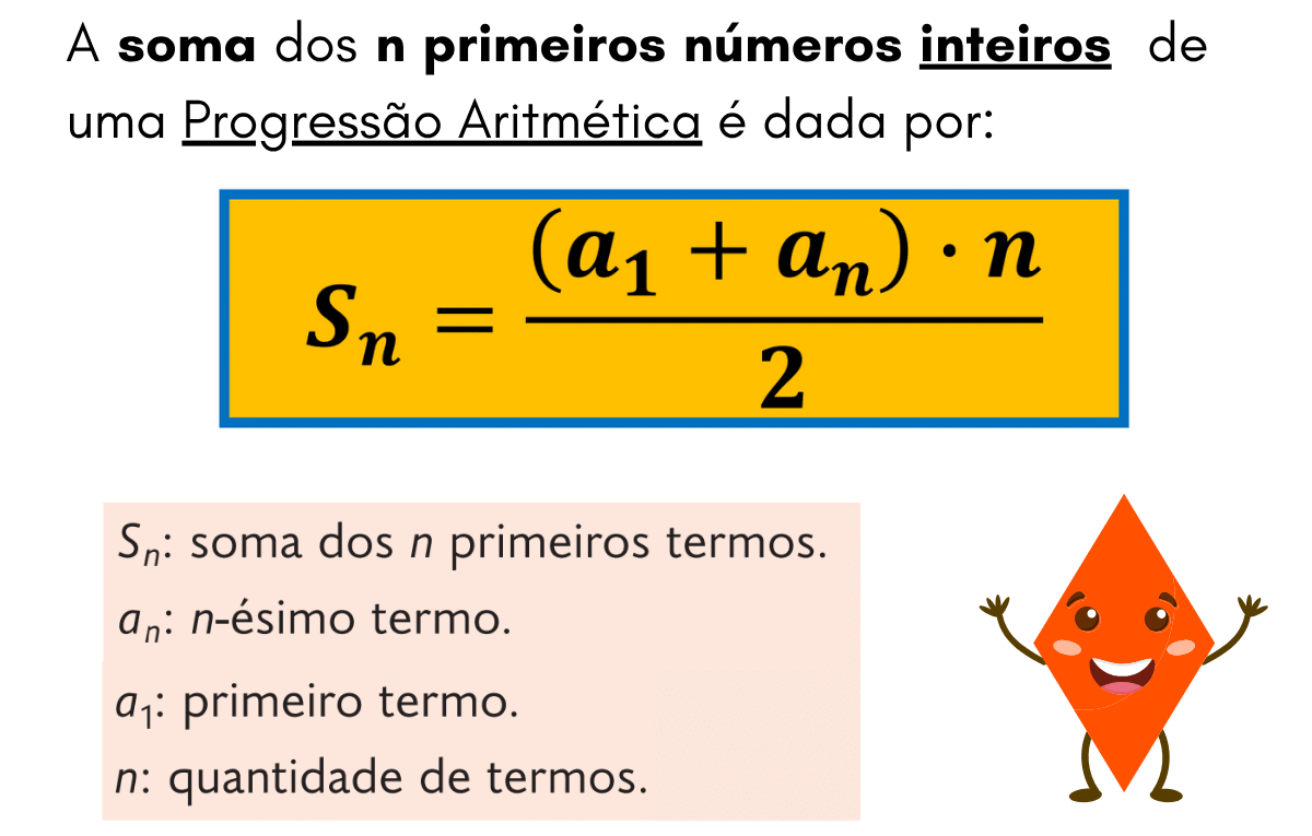 Continue lendoSoma dos termos de uma P.A. (Sn) — Fórmulas, exemplos e exercícios Soma dos termos de uma P.A. (Sn) A
