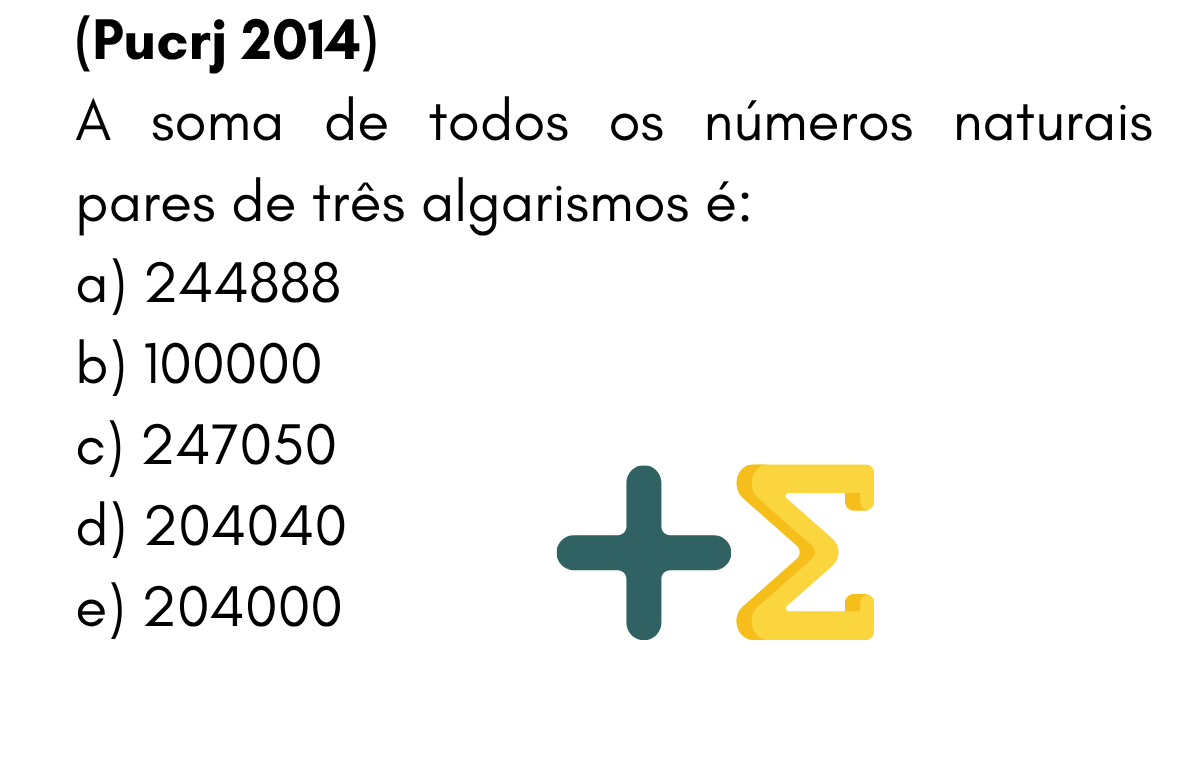 Continue lendoPA — Questão 5 (PUCRJ 2014) • Soma dos pares de três algarismos Questão 5 — Soma dos pares de