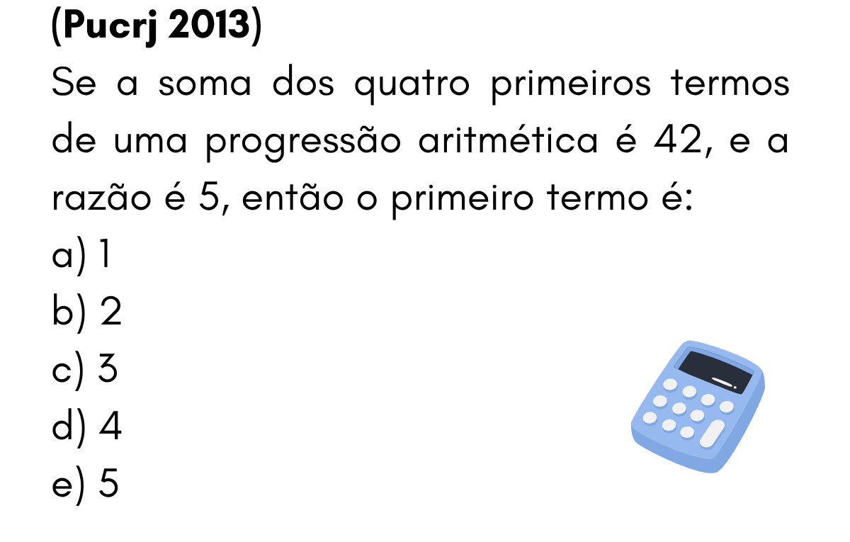 Continue lendoPA — Questão 6 (PUCRJ 2013) • Primeiro termo dado S₄ e r Questão 6 — Primeiro termo da PA