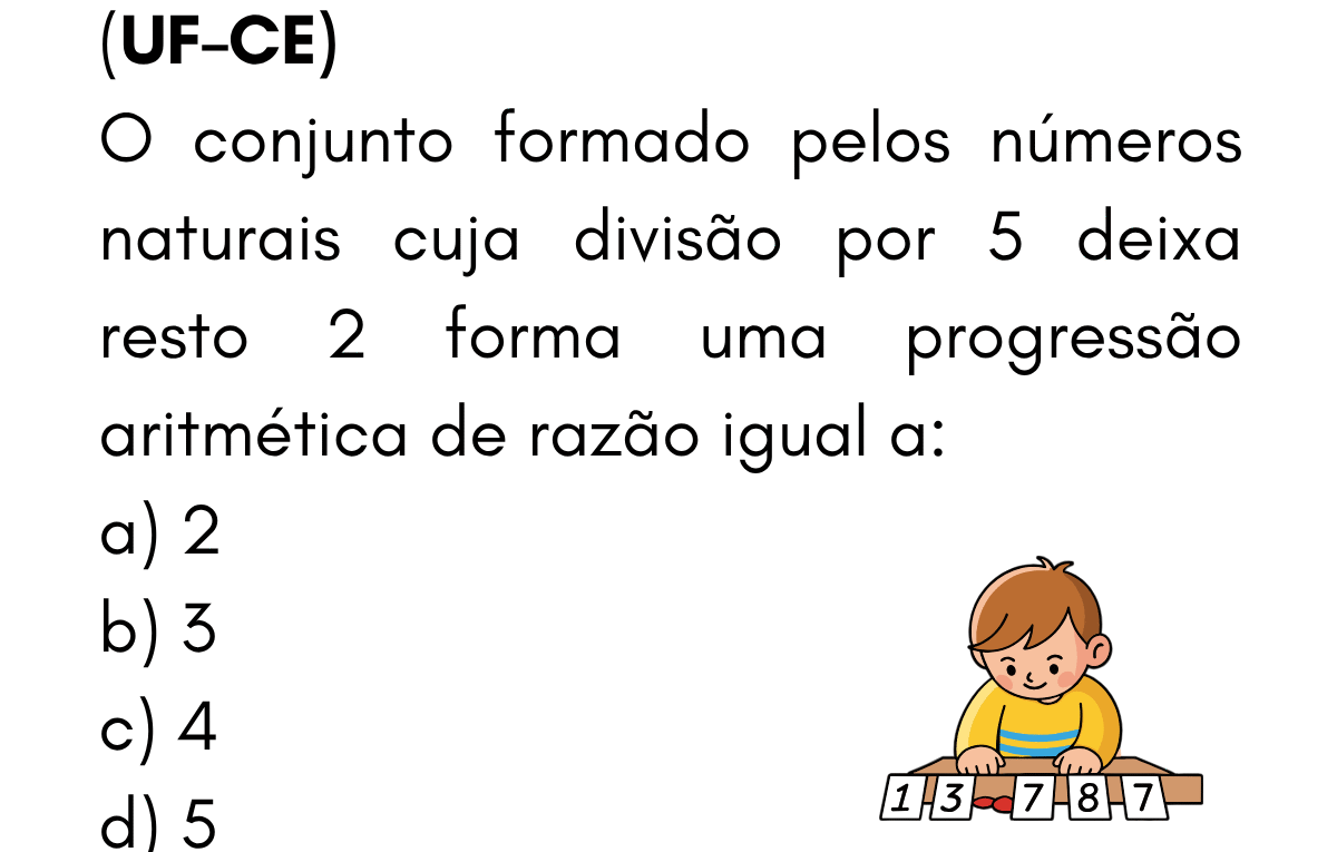 Continue lendoPA — Questão 7 (UF-CE) • Razão da PA dos números ≡ 2 (mod 5) Questão 7 — Razão da